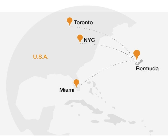 Bermuda’s location in the Atlantic Ocean means we are in close proximity to many major gateway cities and the island is served by major airlines. We are only a few hours away from the east coast cities of the United States. There are also regular direct flights to Toronto and London.