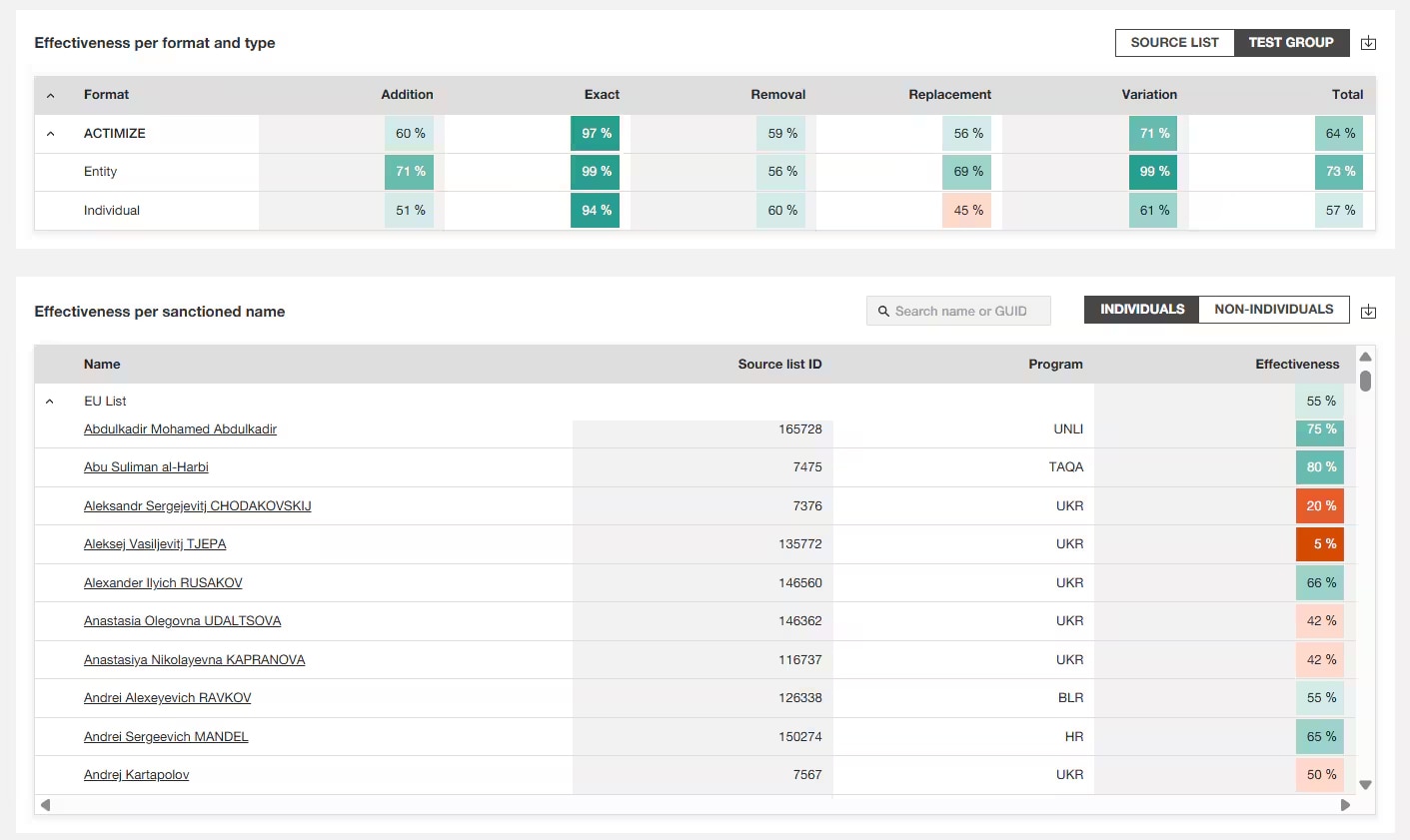 Ability to continuously test the filter on real sanctioned names gives them the understanding on their risk and exposure.