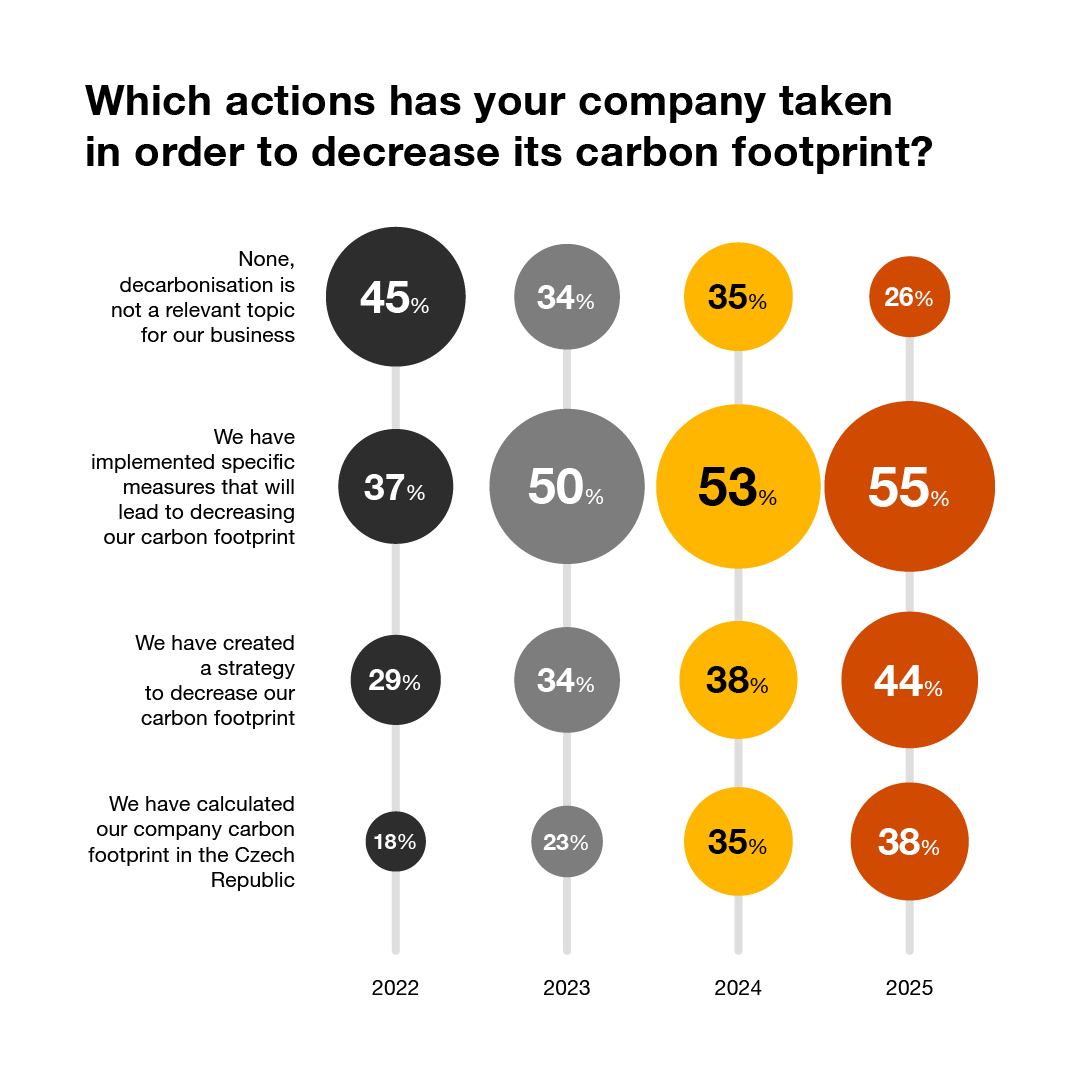The highlight of this year’s Survey is certainly the more optimistic mood of Czech CEOs. In contrast to the often-sceptical outlook, they are positive in their expectations of economic growth. As a result, two-thirds of CEOs expect their company’s revenues to grow this year, and 9 out of 10 bosses have no doubt about it in the three-year horizon. As expected, they are concerned about recession in foreign markets and staffing issues such as a shortage of skilled workers and uncontrolled growth in labour costs. And how to meet the company’s growth? Invest in technology and efficient business management, specialise in production or services, take advantage of export opportunities and address succession issues early.
