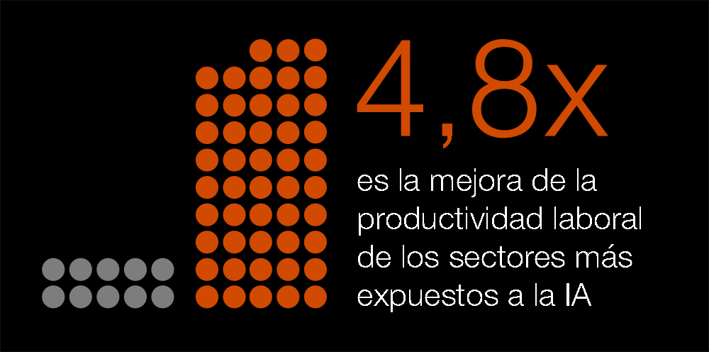 Nuestros datos sugieren que la IA ya está haciendo que los trabajadores sean mucho más productivos. Los sectores que están especialmente expuestos a la IA están experimentando un crecimiento en la productividad laboral casi cinco veces mayor. Este aumento de productividad laboral es un motor clave del crecimiento económico y para la mejora del nivel de vida. En consecuencia, la IA es una buena noticia para un mundo que enfrenta un crecimiento de la productividad constantemente lento.