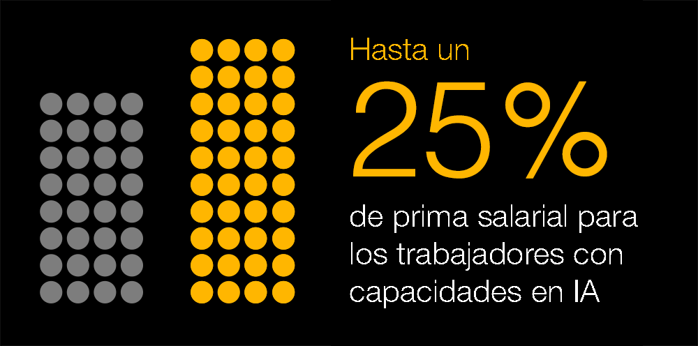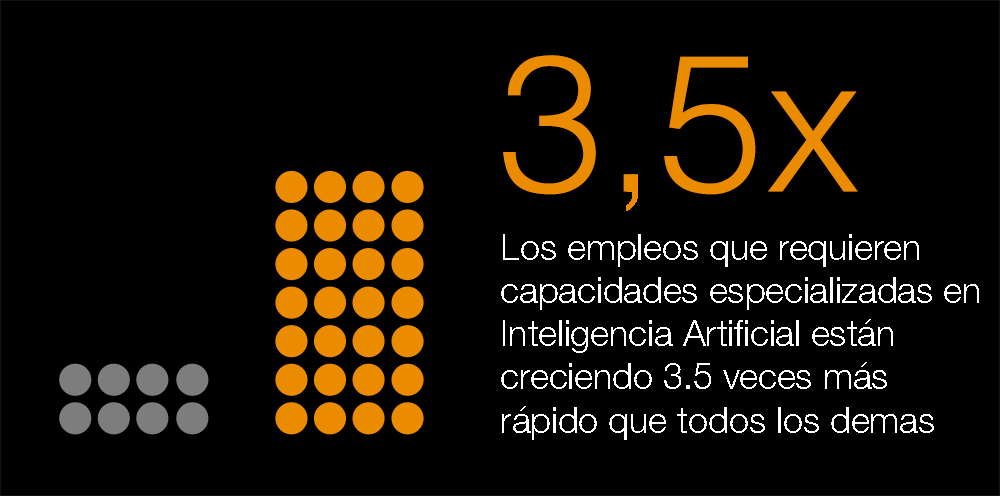 La capacidad de esta nueva tecnología para aumentar el valor de los trabajadores es evidente,con lo que está ocurriendo con el pequeño grupo de trabajadores con habilidades técnicas altamente especializadas en IA (como el aprendizaje automático), las mismas personas que están haciendo posible la revolución de la IA. El crecimiento de los empleos que requieren habilidades especializadas en IA ha superado el crecimiento en todos los empleos desde 2016. Estos trabajos especializados conllevan un aumento salarial de hasta el 25%, destacando la importancia de estas habilidades para las empresas.