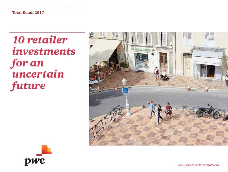2017 Total Retail report is focused on the kinds of investments retailers will need in order to thrive in tomorrow’s marketplace. This is the 10th consecutive year that PwC has published a study of online shoppers, and our sixth truly global study. This year we added several new areas of research, including Amazon’s impact and customers’ willingness to consider retailers as health care providers. We also delved into other research sources and included the insights of a number of PwC partners. The result? Ten areas where we believe retailers need to consider investing in to stay ahead of the competition.