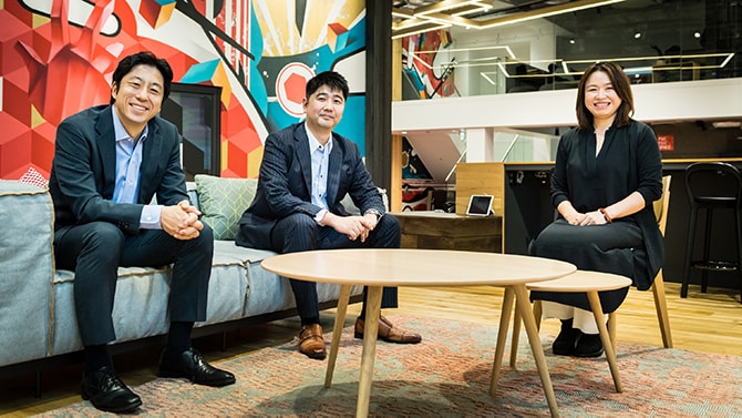 (左から)久保田 正崇、綾部泰二、篠田 佳奈氏