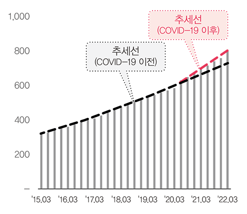 글로벌 주요국의 통화정책이 성장둔화보다 물가에 조금 더 집중하는 상황이 진행되면서, 한국 역시 금리인상이 단행되고 있습니다. 게다가 파월 의장은 8월말 잭슨홀 미팅 연설에서 이른 긴축완화(내년 금리인하) 기대를 강하게 반박하며, 아직 긴축 기조가 끝나지 않았음을 강조했습니다. 중앙은행은 인플레이션을 통제하기 위해 금리를 인상해야 하지만 이 경우 가계의 실질 소비 여력은 축소되고, 더불어 각 경제주체의 이자비용이 증가할 수밖에 없습니다. 이에 ‘금리 인상 시대, 부채 점검’의 시간을 갖고자 하며, 금번 보고서(1부)에서는 금리 인상이 한국 가계 부채 및 경제 전반에 미치는 영향을 점검해 보고자 합니다. 다음 번 보고서(2부)에서는 기업부채를 다룰 예정입니다.