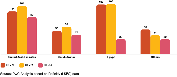 As seen in the latter part of H2-2022, ongoing efforts to attract increased foreign investments to key economies like Saudi Arabia and the UAE continue to propel capital market dynamics within the Middle East.