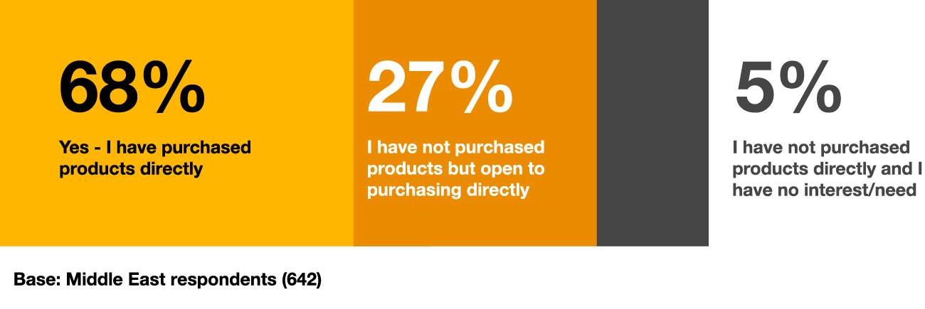 68% of survey participants directly purchased products from the brand’s website vs 63% of their global peers. Ensuring the authenticity of products is a key reason why 31% of regional consumers. More than half of our regional respondents have purchased food, beverages, clothes and accessories directly from the brand’s website, while more than 40% have purchased electronics, beauty and personal care products.