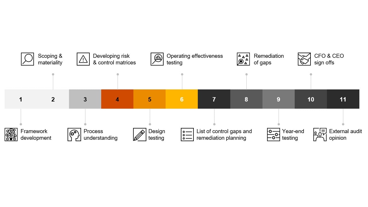 Based on the above, incorporate the relevant recommendations identified from gap assessment in your ICFR journey for 2025, a high-level overview of the ICFR journey is included below: