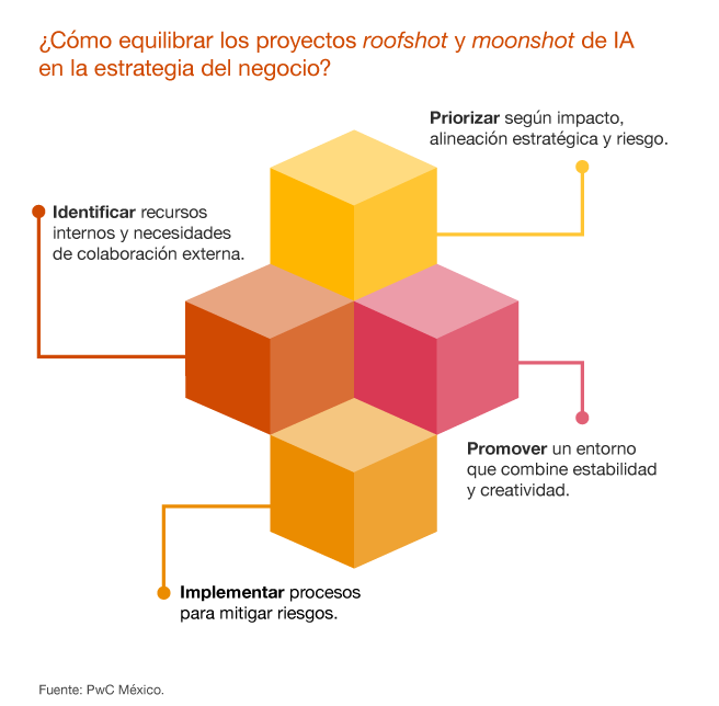 Asimismo, tendrán la oportunidad de posicionarse estratégicamente para adoptar proyectos moonshot en el mediano plazo, a partir del desarrollo de sus capacidades y la profunda integración de la IA en sus procesos y sistemas de negocio.