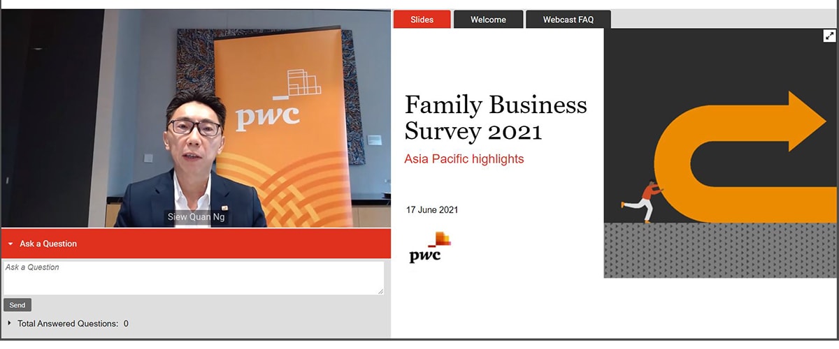 NextGens from across the Asia Pacific participated in our webinar as we launched PwC’s Family Business Survey Asia Pacific report. We were also joined by NextGen guest speakers Rama Kirloskar (Director, Kirloskar Brothers Limited), Ryan Li (Vice President for Overseas Investment, Feishang Group), Patrick Wijaya (Operations Director, PT Daya Cipta Kemasindo) and Peter Englisch (Global Family Business Leader, PwC). Different regional perspectives and challenges that NextGens had were shared - in driving long-term value for family businesses and especially in their involvement around digitalisation and sustainability.