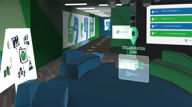 Hold multi-user meetings and workshops and collaborate in immersive environments. Use cross platform devices to communicate and interact with people and persistent digital products.