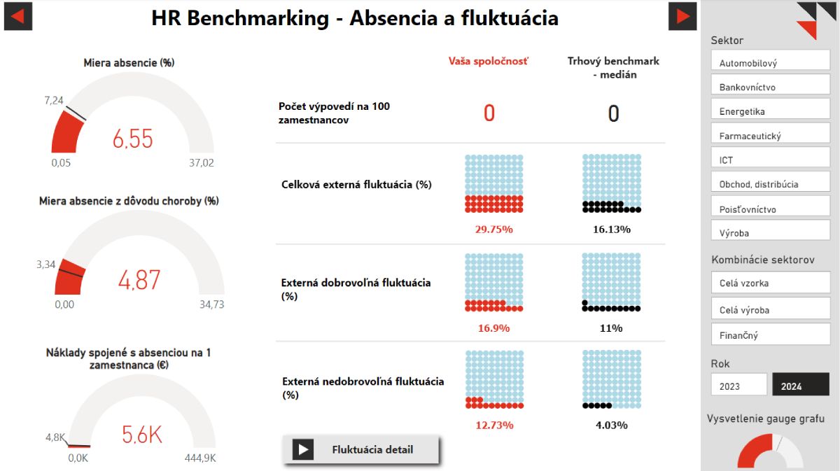 HR Benchmarking is a tool to determine the level of efficiency of human resources management in comparison with other leading companies on the Slovak market. The survey reveals the need for a more thorough examination of the cause of possible deviations and enables to identify the areas of possible improvements.